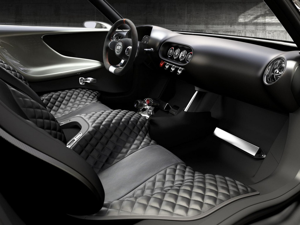 It is quite a fascinating proposition, especially inside the cabin. The diamond pattern leather upholstery covers and connects both front seats by going over the center console, which is a very cool touch, and the sport steering wheel and dials suggest massive driving fun.
