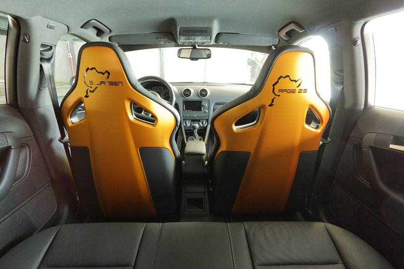The RS3 Sportback is powered by Audi’s famous 2.5 liter 5-cylinder turbo engine with 340 horsepower and 450Nm of torque standard. SchwabenFolia’s RS3 however boasts 425 horsepower and 570Nm of torque. The main source of this extra is power is an F-Twon RAGE 2.5 exhaust system with 80mm tailpipes.
