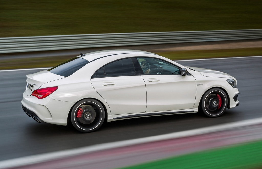 Compared to the standard CLA-Class, the CLA 45 gets new front and rear bumpers with a spoiler lip and large air intakes at the front and a neat diffuser at the back along with four AMG tailpipes. It also gets a pair of carbon side skirts, boot lid spoiler, privacy glass, AMG wheels and red brake calipers.