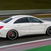 The engine powering the CLA 45 is the most powerful production four-cylinder engine it the world with a maximum output of 265 kW (360 hp) and up to 450 Newton metres of torque. It enables the car to accelerate from zero to 100 km/h in 4.6 seconds and its top speed is 250 km/h (electronically limited). And because it is only a 2.0 liter and turbocharged, it is also quite frugal.