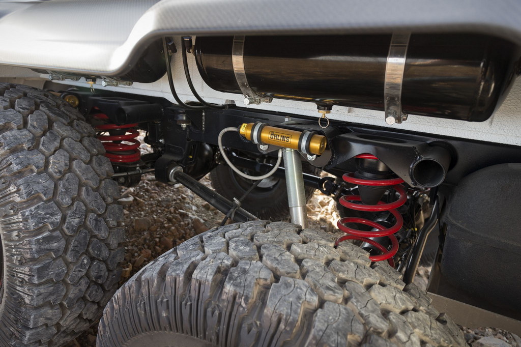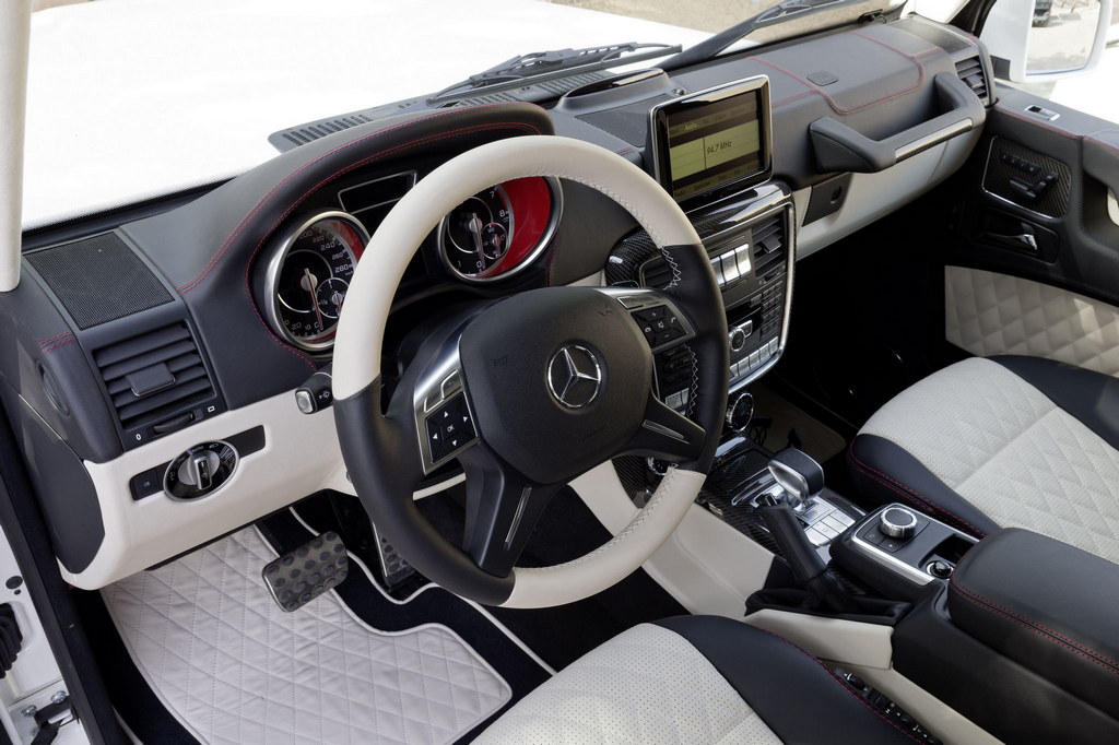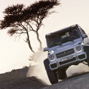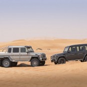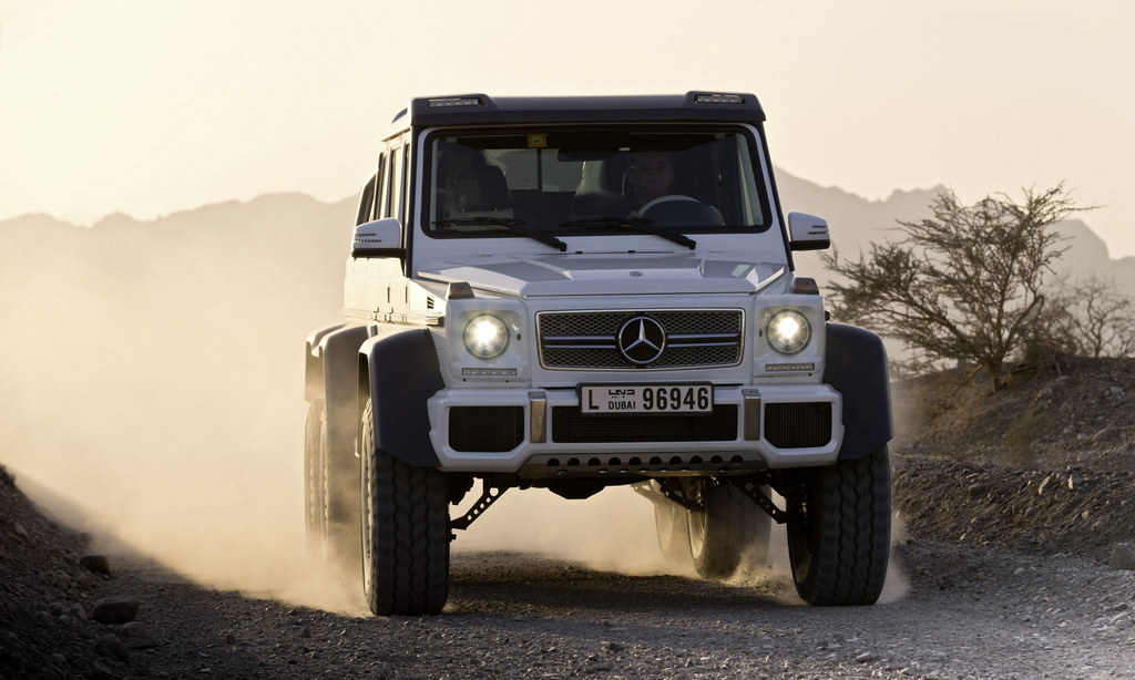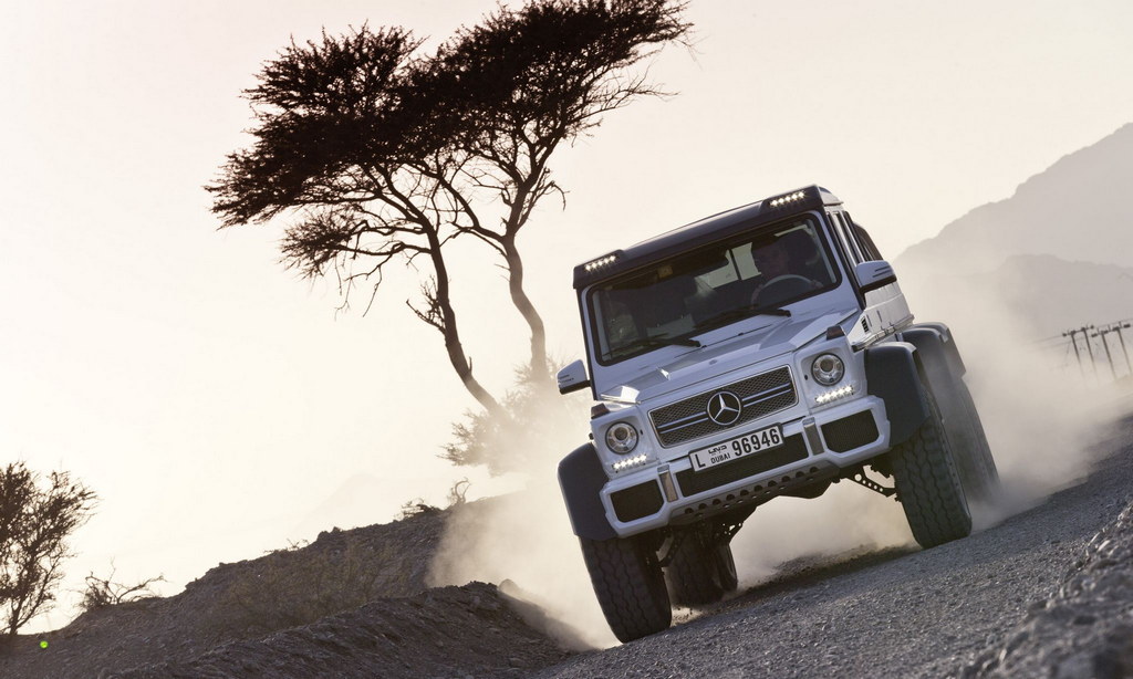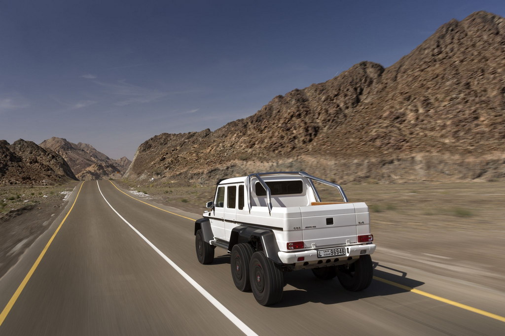 To maximize the G63 6×6 off-road capabilities, AMG has fitted it with 37-inch tires, portal axles, tire pressure control system and a special chassis featuring adjustable gas-pressure shock absorbers.