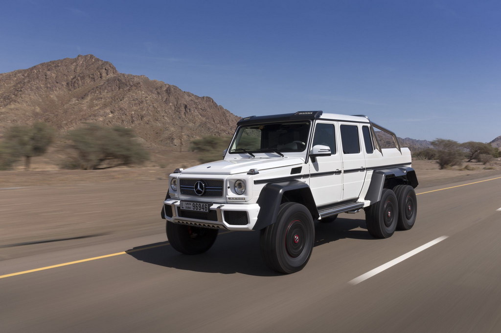 The six-wheel-drive G63 is powered by the same 5.5 liter twin-turbo V8 as the normal G63s, with 540 horsepower. Thanks to this monstrous Powertrain the 3.7 ton vehicle can go from 0 to 100 km/h in under six seconds.