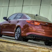 The Optima comes in LX, EX, SX and SX-Limited trims, and the standard kit includes dual exhaust with chrome tips, solar glass, exterior mirror turn signal indicators, front fog lights, exterior heated mirrors, chrome accented exterior door handles and new 16-inch alloy wheels fitted with 205/65R16 tyres and a six-speed automatic transmission.