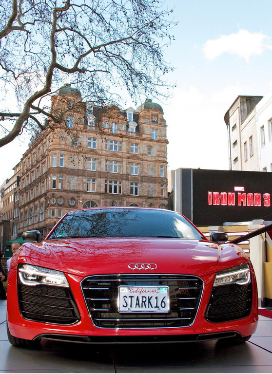 Audi’s partnership with Marvel’s Iron Man franchise has become more than just a simple sponsorship deal, as the R8 has become part of the entire thing and the company is even involved in the new comics they are making. So it was only natural that an Audi R8 e-tron attend Iron Man 3 special screening event in London.