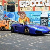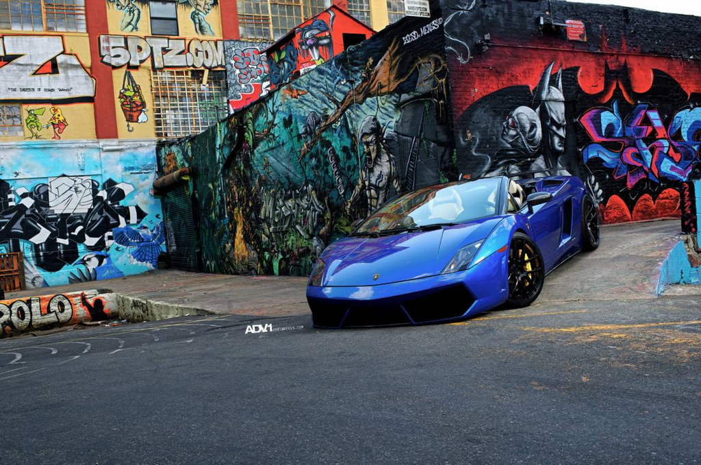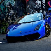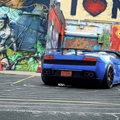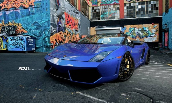 Another awesome release by ADV1 Wheels. Here we have a blue Lamborghini Gallardo LP560-4 Spyder, fitted with a set of ADV5.01 wheels in a glossy black finish. The color of the rims complements the black parts of the body, including the pillars, side mirrors, and front and rear spoilers. It also make a nice contrast with the exterior color.