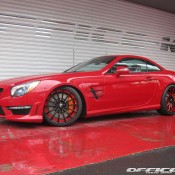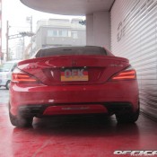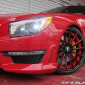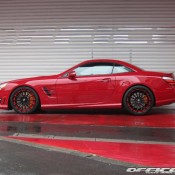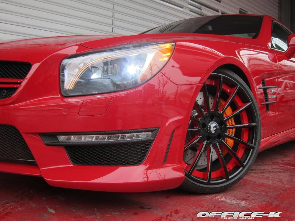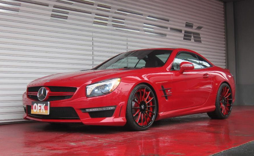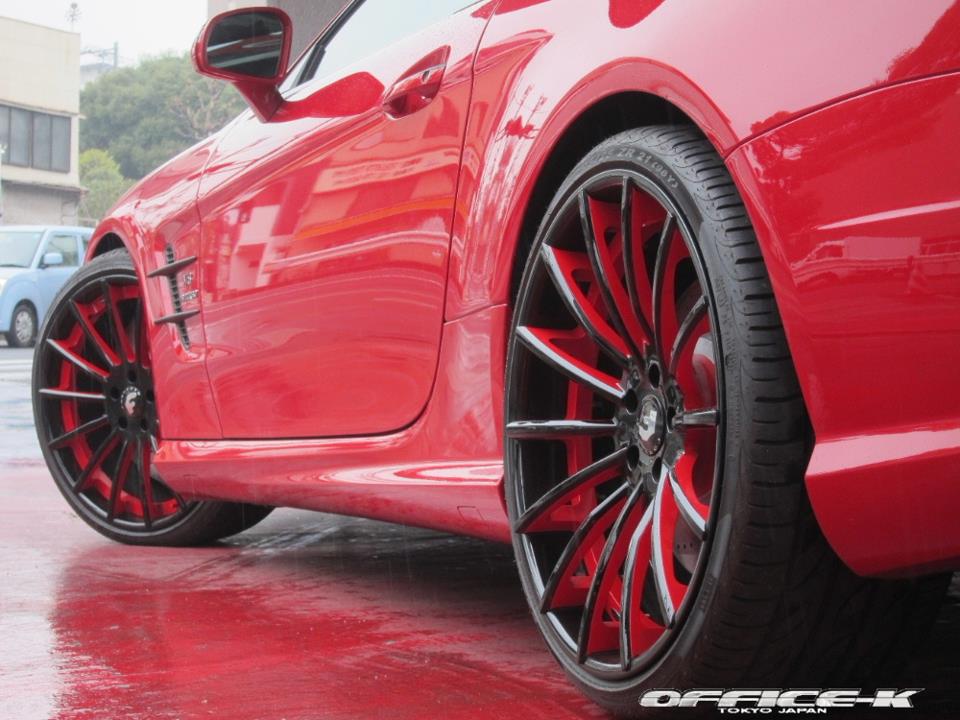 Mad Japanese tuner Office K has come up with a special setup for the 2013 Mercedes SL63 AMG, involving a set of Forgiato Wheels. The Red SL63 gets Forgiato 2.15 rims size 20″ up front and 21″ out back. What sets these wheels apart is the unique finish with black face and red outer lips and spokes. We’re not sure if red suits the SL in the first place, but nevertheless, it is an interesting combo.