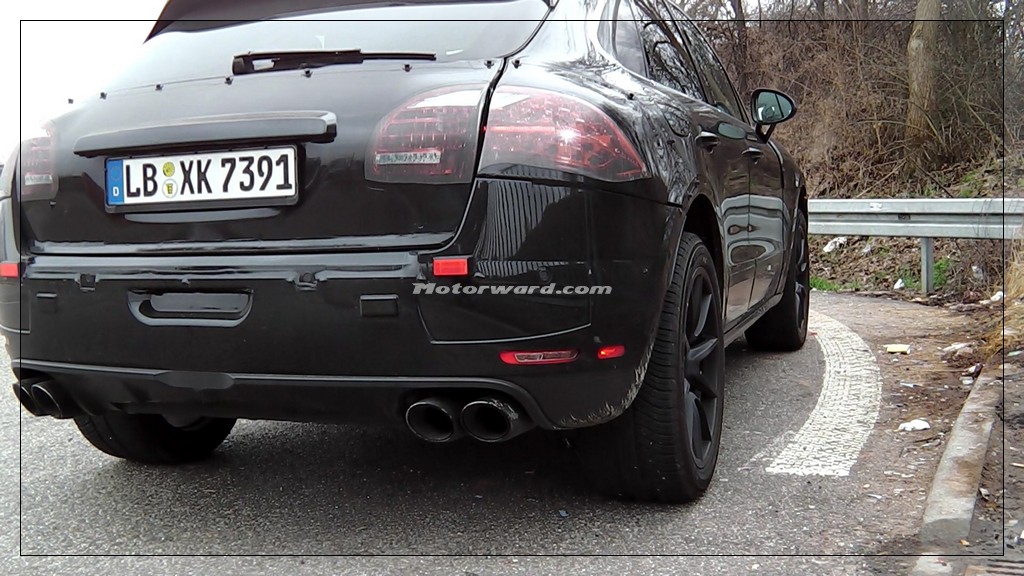 The Evoque-rivalling Macan features a sports bumper at the front with a contrasting skidplate typical of large off-roaders. That’s probably there to give it some of that fake off-road look the crossovers love so much! The car also sports nicely designed LED daytimers, partially covered in these pictures. The Camouflage is heavier at the back, but you can get a clue on what the taillights look like, and also see the diffuser with its four tailpipe design.