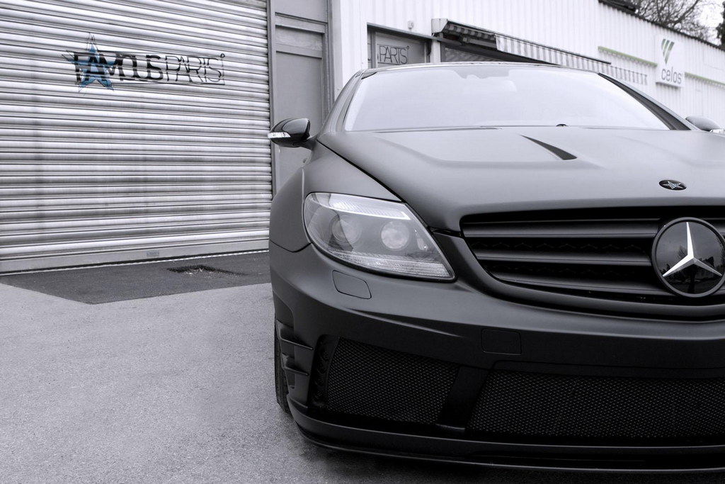 Mercedes specialist Famous Parts has prepared a new package for the Mercedes CL 500 featuring a magnificent ‘Moonshine’ matte black wrap. They have styled the CL with a wide body kit from Prior Design, and also included some other parts from Brabus and AMG. This is a blended Mercedes CL, and it tastes good.