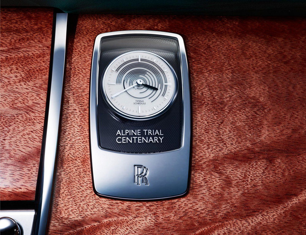 The Ghost Alpine Trial Centenary Collection is the first Roller to pay homage a heritage car, featuring distinct black grille and wheels like those of Radley car’s. Inside the cabin it gets a special clock that displays the stages of the rally and timings, whilst inlays to rear picnic tables and the front fascia express the topography and distances of the Alpine route.