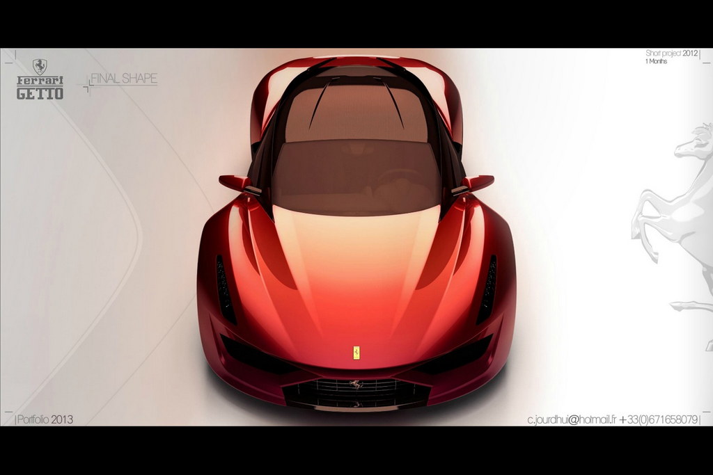 The new LaFerrari, as you may know, has been designed entirely by Ferrari’s own people. It has no input from Pininfarina, who usually designs Ferrari super cars, which is probably why it looks like one of those student design we see now and again. Speaking of which, here’s a new one called Ferrari Getto.