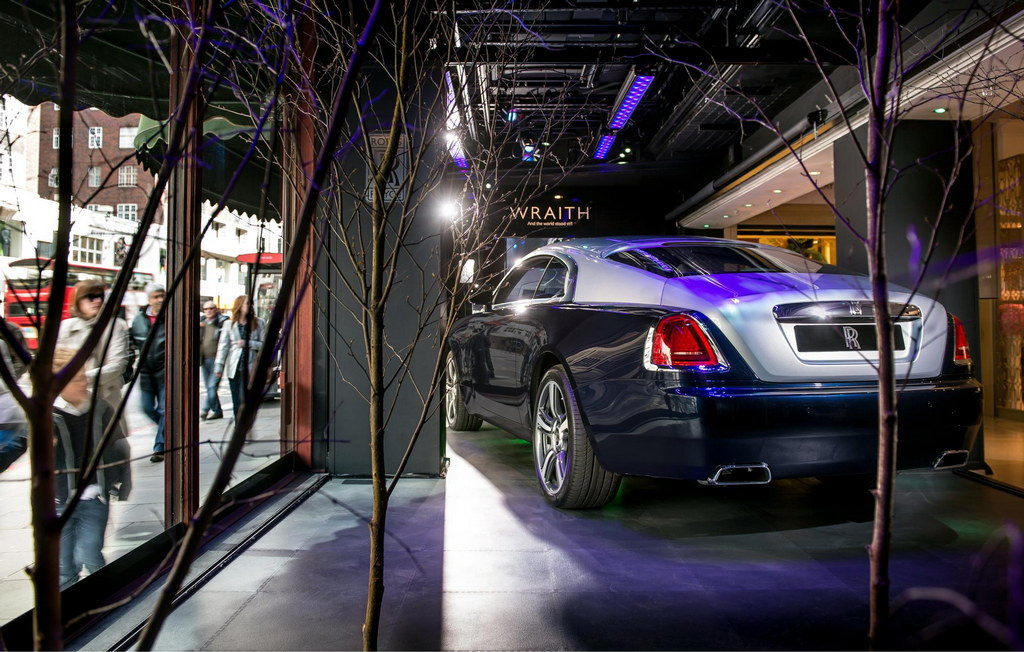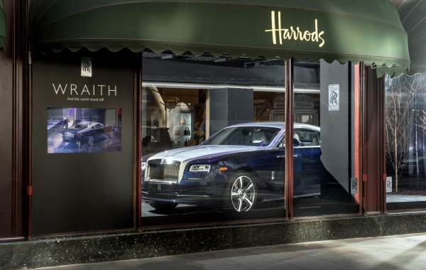 The new Rolls-Royce Wraith, the coupe version of the Ghost, makes its UK debut today at the luxury department store Harrods in Knightsbridge, London. The car is showcased in the main window display and will be there for one week.
