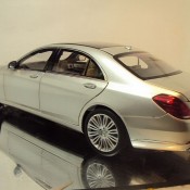 More pictures of the new generation Mercedes S-Class leak onto the web, but this time it’s a scale model of the real thing that gives us a good look at the new car. The new headlights, bumpers, side profile, rear-end design, this model reveals them all. You even get a good look at the interior if the new S-Class.