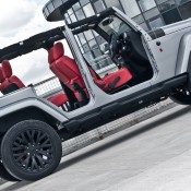 Regardless of the color, all cars feature the same sort of visual features, including brake calipers, front grille & industrial mesh, xenon crosshair headlamps (pair), Kahn enamel wing shields, fuel filler cap in smoked black, optional quad exhaust system, side and rear panels (colour coded), mud flaps (toughened rubber) set of 4, door mirrors in body colour, rear light sections in body colour, Chelsea truck company spare wheel cover and extra Kahn enamel tailgate logo. Not to mention a set of 20-inch Kahn RS 20-inch wheels in sating black are also included.