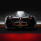 The Egoista is a single seater inspired by the Apache helicopter, and it has a cockpit with canopy and everything, which can be ejected in an emergency. It has active aerodynamics in form of two rear flaps the deploy at high speed to increase downforce, and it needs that, give a 600 horsepower V10 engine. Instead of traditional lights, the Egoista features LED clearance lights which determine its position not just on a single plane such as the road, but rather in three dimensions, as is required in airspace.