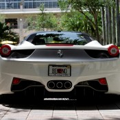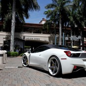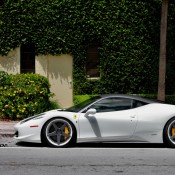 The wheels measure 21×9.5″ front and 22×12.5″ rear, with 255/30/21 and 335/25/22 Pirelli tires. Sure, the 458 loses some of its awesome track capabilities with those massive wheels, but it looks pretty awesome parked outside your favorite fancy restaurant where it really belongs.