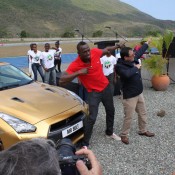 The unique Bolt GT-R was delivered to the world’s fastest man during a special but casual ceremony in his home country of Jamaica. The car was presented to Bolt at his home training facility by Jose Román, vice president of Nissan Latin America and the Caribbean, and in presence of a sizable crowd including members of Usain Bolt Foundation.
