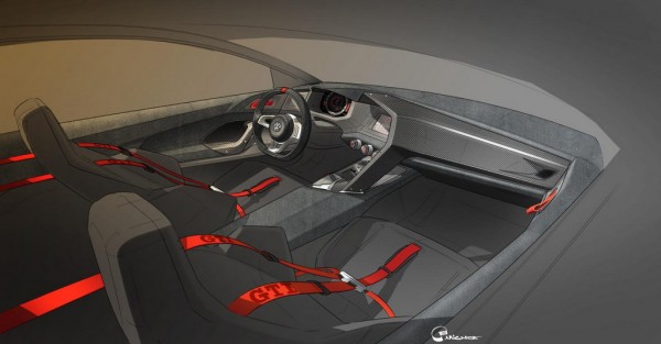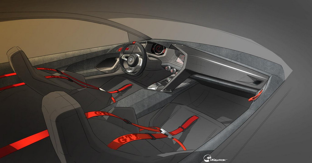 Design Vision GTI also has as very cool interior with rugged turn knobs for climate control, the hazard light switch, and the activation for the on-board camera. An electrical kill switch, a push-button for the fire extinguisher and the ESP deactivation are housed underneath. The car has three drive modes: “Street,” “Sport” and “Track”, but if that W12 model is any indication, handling is not going to so sweet.