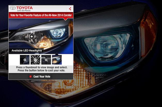 The teaser reveal the new Corolla’s aggressive LED headlights, sports grille, Furia-inspired front bumper with fog lights, rear spoiler, 17-inch wheels, and the large touchscreen for the Entune infotainment system.