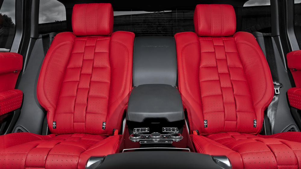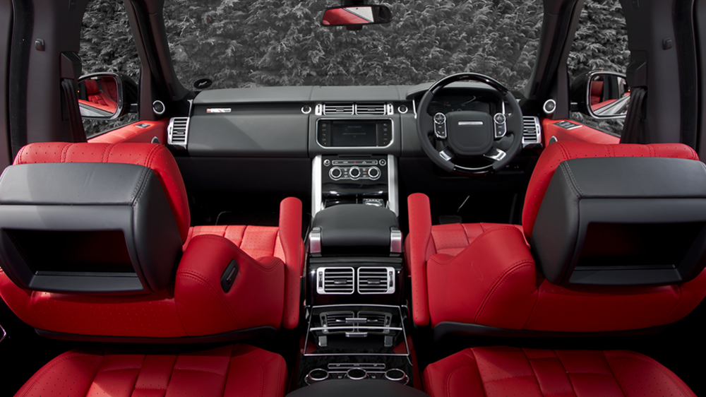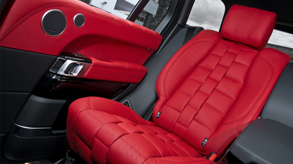 As for the interior package, you get red quilted & perforated front and rear leather seats with watch strap theme, piano black trimming for the center console, steering wheels and door panels. You also get Range Rover branded headsets for the car’s entertainment system. Kahn designers have a great taste in choosing the right color combo and the overall design of the cabin.