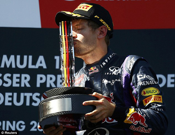 Despite their best efforts, the Lotus cars just couldn’t prevent a dominant Vettel take his first German Grand Prix and the Red Bull driver punched the air as he crossed the line.