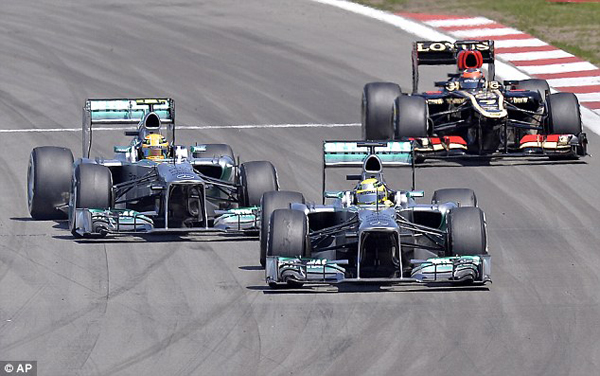 Behind Hamilton and Vettel came Mark Webber in third and the Lotus cars of Kimi Raikkonen in forth and Romain Grosjean in fifth.