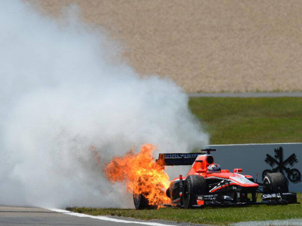 Approaching the halfway point and Jules Bianchi peeled of the track as his Marussia caught fire. Having climbed out, waiting for the cranes to lift the car free, the Frenchman watched on as the Maruissa rolled backwards across the track. This brought out the safety car and drivers headed for the pits for fresh rubber.