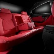 The interior is a sea of red leather, as it’s used to cover the seats, door panels, parts of the dashboard and even the steering wheel.