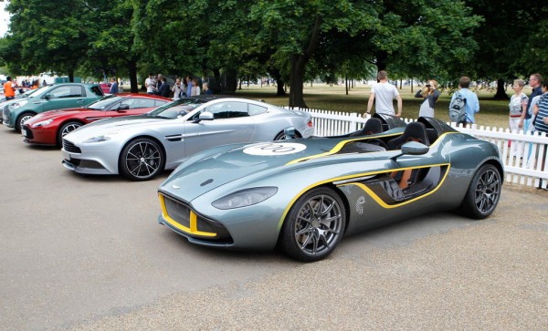 The collection of old and new Aston Martins on display estimated to be worth around £1 billion, and included the vintage racing models, Lagondas, and a special section for the DB5 s a tribute to its James Bond connections. Modern Astons were also among the main attractions; the Vanquish Centenary Edition, forthcoming V12 Vantage S and Vanquish Volante, as well as the CC100 Speedster Concept, joined the Ulster, iconic DBR1, legendary DB4 GT Zagato and Gulf-liveried V8 Vantage GTE.