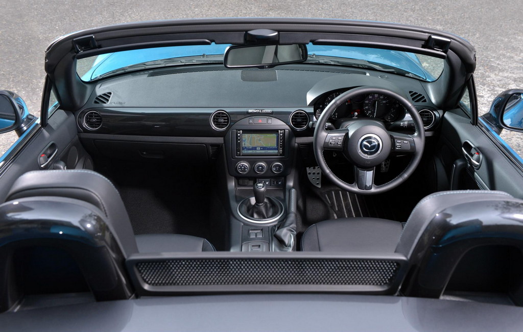 As for the interior, you get unique grey stitching on the leather steering wheel and handbrake, glossy dark grey steering wheel spokes and dashboard panel,an alloy pedal set; and optional MX-5 floor mats with unique grey piping.
