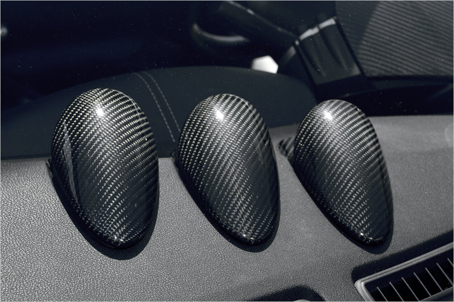 The car gets a special carbon treatment as well, starting with the interior with clear carbon covers for the top of the instrument panel and dashboard dials, as well as the engine bay. The interior also benefits from a bespoke audio system with a large subwoofer in the trunk, which eliminates whatever limited space you have back there.