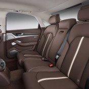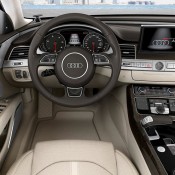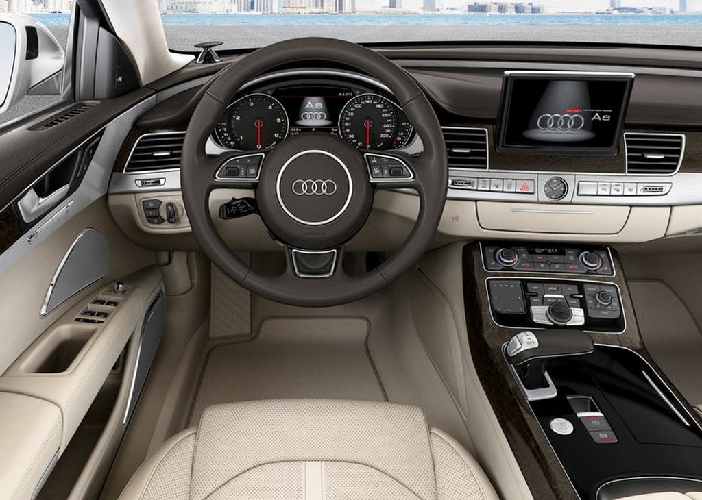 Design-wise, while the 2014 Audi A8 Facelift may look to you exactly the same as every other Audi sedan that’s ever been, but it has revised hood and grille, and new head and taillights. Speaking of the lights, they feature Matrix LED technology and some fancy sequential indicators. What’s more, in the new model the adaptive cruise control with Stop&Go function is coupled with an expanded version of the standard Audi pre sense basic safety system.