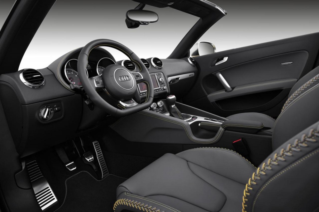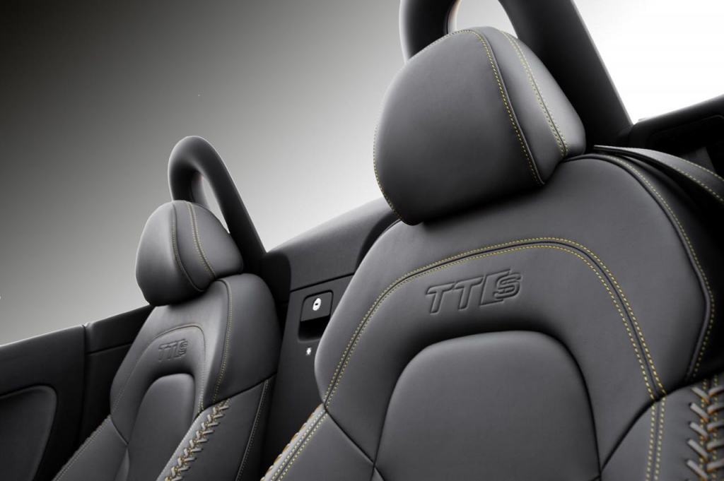 The TTS Competition comes in just two exclusive colors, Nimbus Gray and Imola Yellow, and is fitted with a unique set of 19-inch wheels shod with 225/35 tires. That is about it for the exterior. Inside the cabin though, changes are more substantial.
