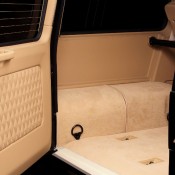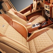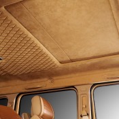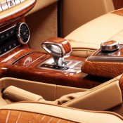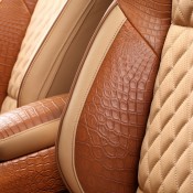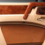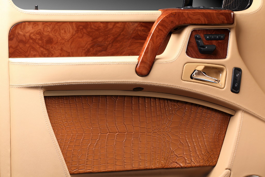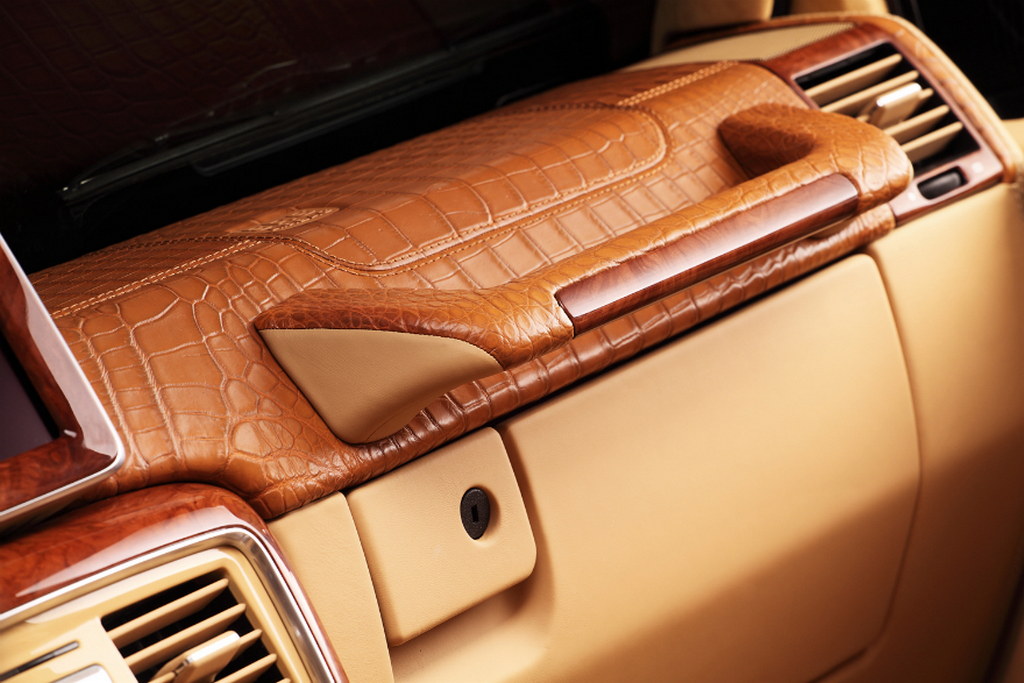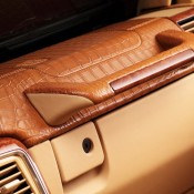 Then the works begin on the interior, where it seems more than a dozen crocodiles have been killed and peeled to provide that ghastly, but undeniably impressive, trimming package. You find it on the dashboard, seats, and door panels, complementing the beige leather upholstery and very lovely wood accents. The roof is covered with Alcantara.