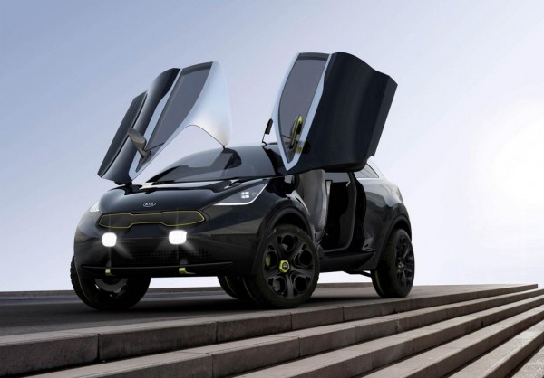 Going with the crossover philosophy, which is a hybrid between a hatchback and a SUV, Kia Niro Concept is designed to undertake a number of tasks. It is fairly compact in size, but it is tall and robust. It has a lot of curves and soft edges, but it also has aggressive angles and big chunky tires to give it the look of an invincible off-roader. It is of course a fake look, but it is cool nonetheless.