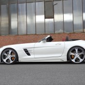 The Mercedes SLS Roadster by MEC Design features a full body kit consisting of a front bumper insert with a one piece spoiler in carbon and LED lights; revised rear bumper with a Black Series style diffuser unit – also available in MEC’s own “Extreme”, “Formula” and “GT3” models; side skirts with LED lighting; and rear spoiler, also available in carbon finish.