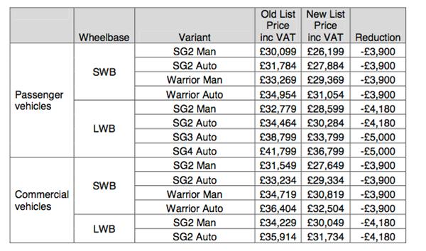 Pricing now starts at just £26,199 for the short-wheelbase 3.2 DI-DC SG2 variant, with the top of the range long-wheelbase 3.2 DI-DC SG4 auto available at just £36,799.