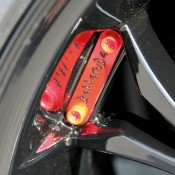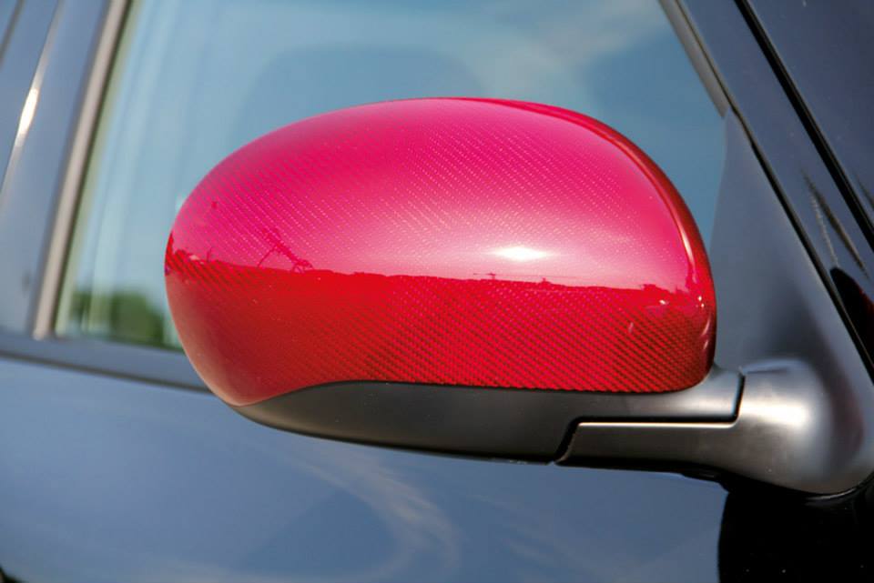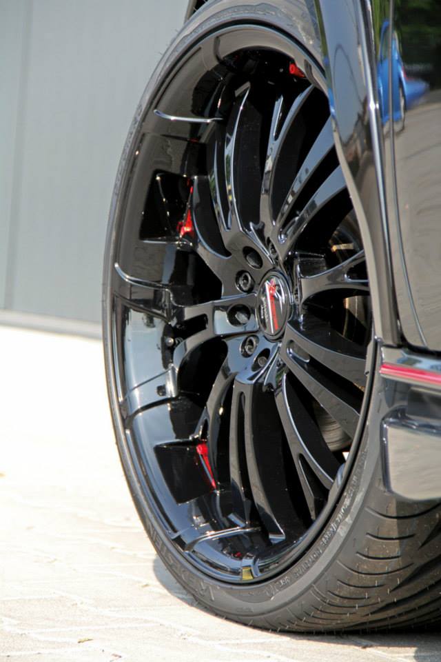So a set of Barracuda wheels were bolted on, a rear apron went into place to make room for two ginormous stainless steel tailpipes, and some red carbon mirrors caps were added to complement the delicate red stripe that wraps the car around. Red accents are also found on the wheels. They are finished in gloss black, garnished with red Barracuda badges on five of the spokes.