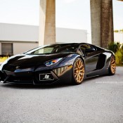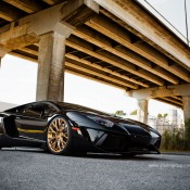 Still, the combination of the black paint work on this Aventador, the design of PUR 2WO RS wheels, and the exquisite Monaco Gold finish results in an amazing thing to look at. The wheels are 20×9 up front and 21×13 out back. The pictures speak for themselves, so, let’s check them out: