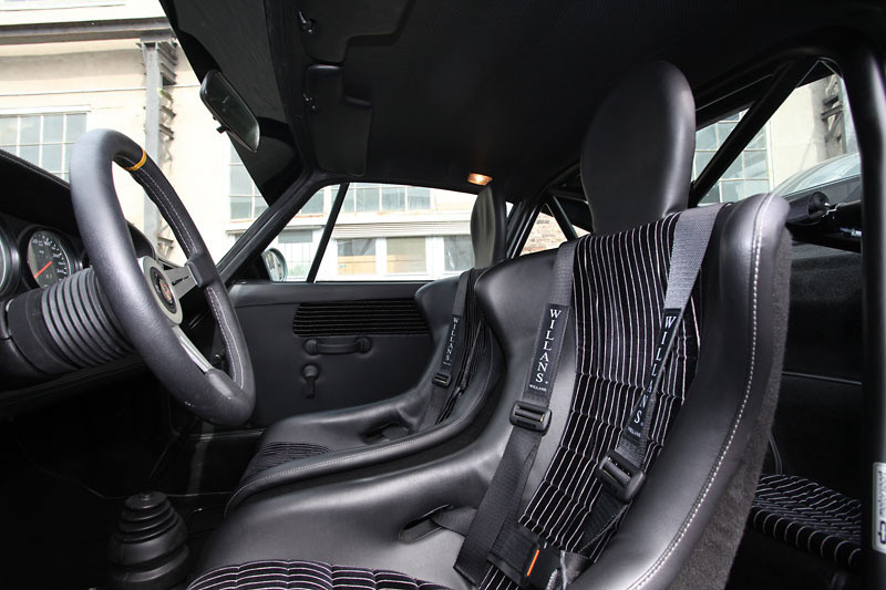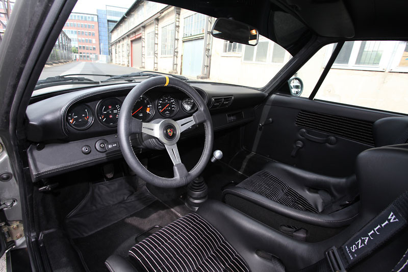 The ancient chassis is also upgraded to cope with the high performance chassis. It gets street/sport Bilstein-shock absorbers and a welded strut brace for extra rigidity, as well as Super Pro polyurethane bushings and Uniballs all around. The wheels are FUCHS (size 7 x 16 and 9 x 16 front and rear, with Michelin semi slicks 225/50 and 245/45 respectively), while the braking system comes from a donor 964 C2.