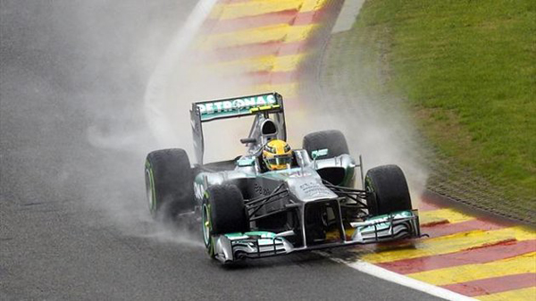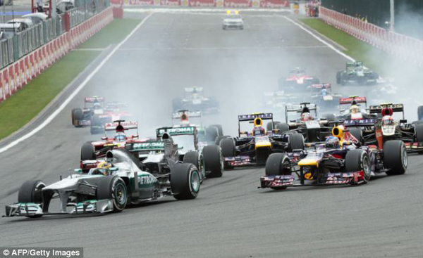 Lewis Hamilton made a perfect start, maintaining his lead over Sebastian Vettel into La Source. Mark Webber bogged down and dropped well down the grid. Nico Rosberg also did well and took third, whilst Felipe Massa struggled to slow his car down and locked up his brakes. On a circuit renowned for its first corner contact, the whole field make it round unscathed.
