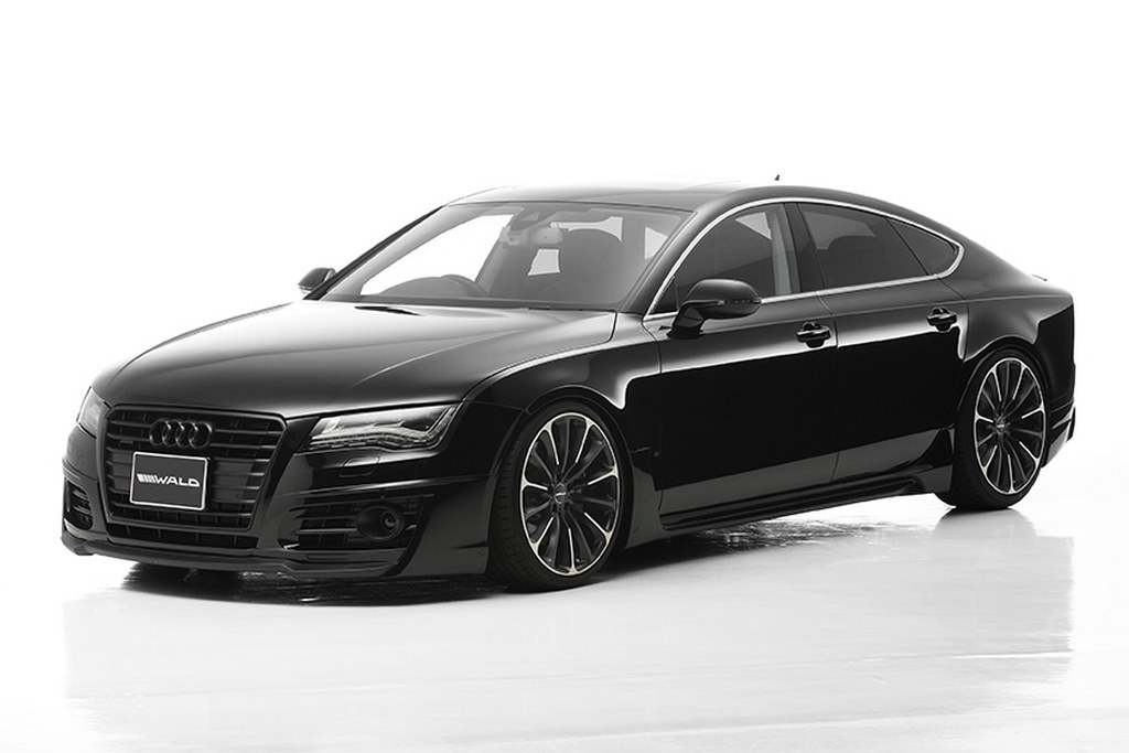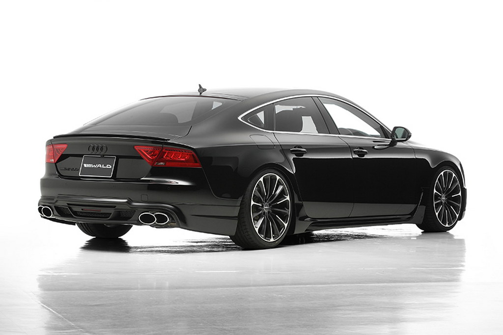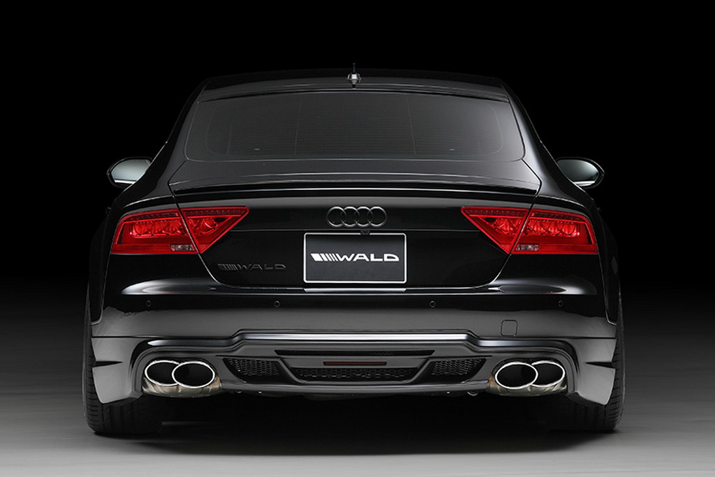 Wald Audi A7 Sportback kit includes a heavily revised front bumper with a chunky spoiler and new air intakes, flared wheel arches, side strakes, a pair of side skirts, and a uniquely design rear diffuser. Add to the mix a set of large and black wheels, and no less than four tailpipes, and you end up with a car that gives a new meaning to the word gangsta.