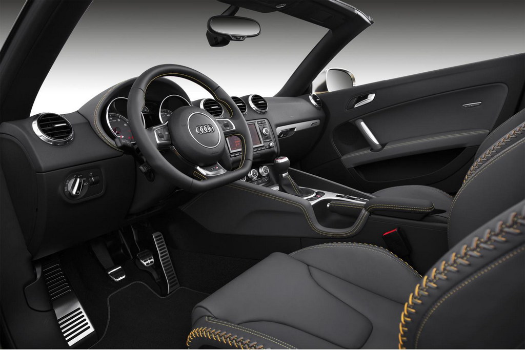 Audi TTS Limited Edition comes with a quad-tailpipe sports exhaust system, TTS sports suspension with Audi magnetic ride damper control, xenon headlamps with LED daytime running lights, electronic climate control, heated front sports seats and matt brushed aluminium inlays. That is in addition to an Audi exclusive paint finish in Nimbus grey for Coupé models and Imola yellow for Roadsters; a fixed rear spoiler in the style of the flagship TT RS; and an upgrade from the standard TTS 18-inch five parallel spoke design alloy wheel to a 19-inch five-arm rotor design.
