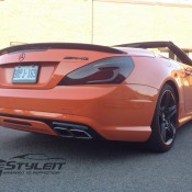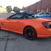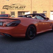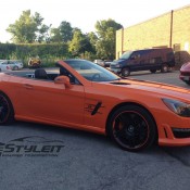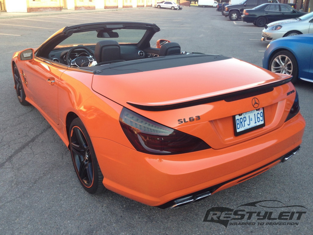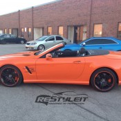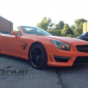 The owner of this SL63, however, definitely wanted to stand out in the crowd, but instead of swapping the SL for a BMW of some kind, he decided to call the guys at Restyle It and see if they can wrap the whole thing in a fiery orange. The tuners were more than happy to oblige.