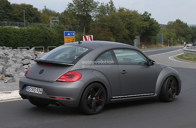 For this model, VW is said to giving the Beetle R a few sportier features than previously expected. Spy shots reveal huge brakes and alloy wheels, very similar to those on the previous generation of the Golf R. The photographer that snapped the shots noted that the Beetle R test model had a very throaty exhaust, much deeper than the previous stock Beetle exhaust offered.