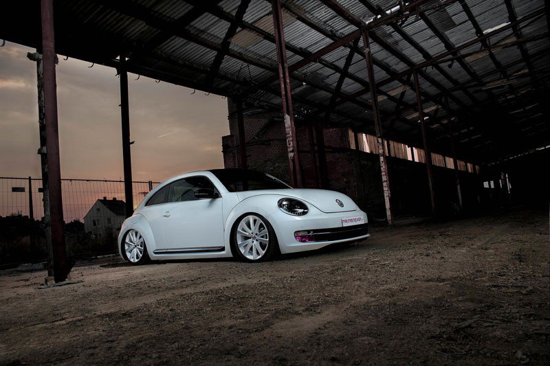 The biggest highlight of this retro-design VW Beetle is its G-Ride air suspension, adjustable of course, which in its lowest setting brings the car so low to the ground it almost looks planted. The car is slammed on a set of 8×19” with 225/35-19 tires. The suspension can be operated remotely.