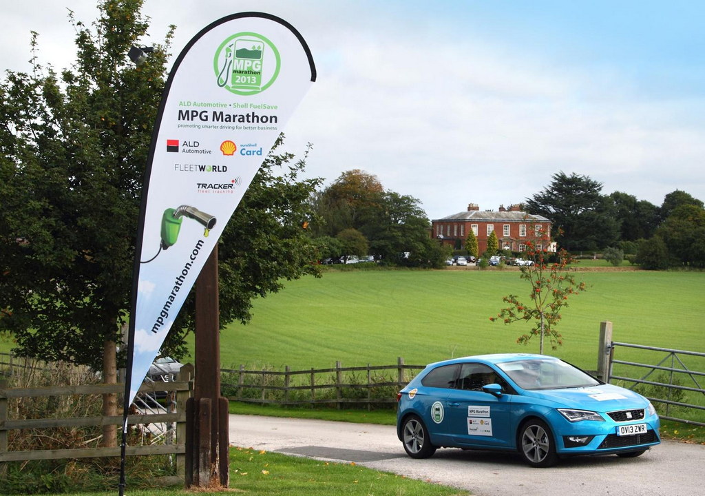 A diesel-powered SEAT Leon FR becomes the 2013 Fleet World MPG marathon champion averaging 66.38 mpg on the 340 mile course, and recording a higher-than-necessary average speed. The SEAT Leon SC FR 2.0 TDI 150 PS DSG, to give it its full name, managed to maintain 36 mph.