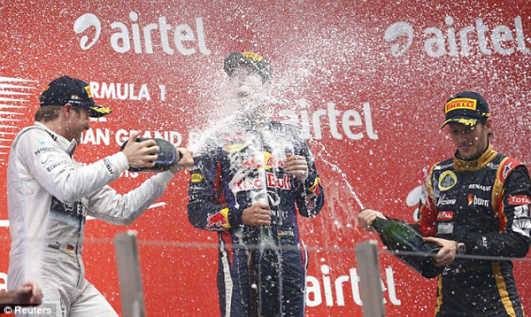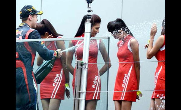 Lap 60 and Vettel scored a hatrick in India whilst taking his forth consecutive world championship – and only aged 26!