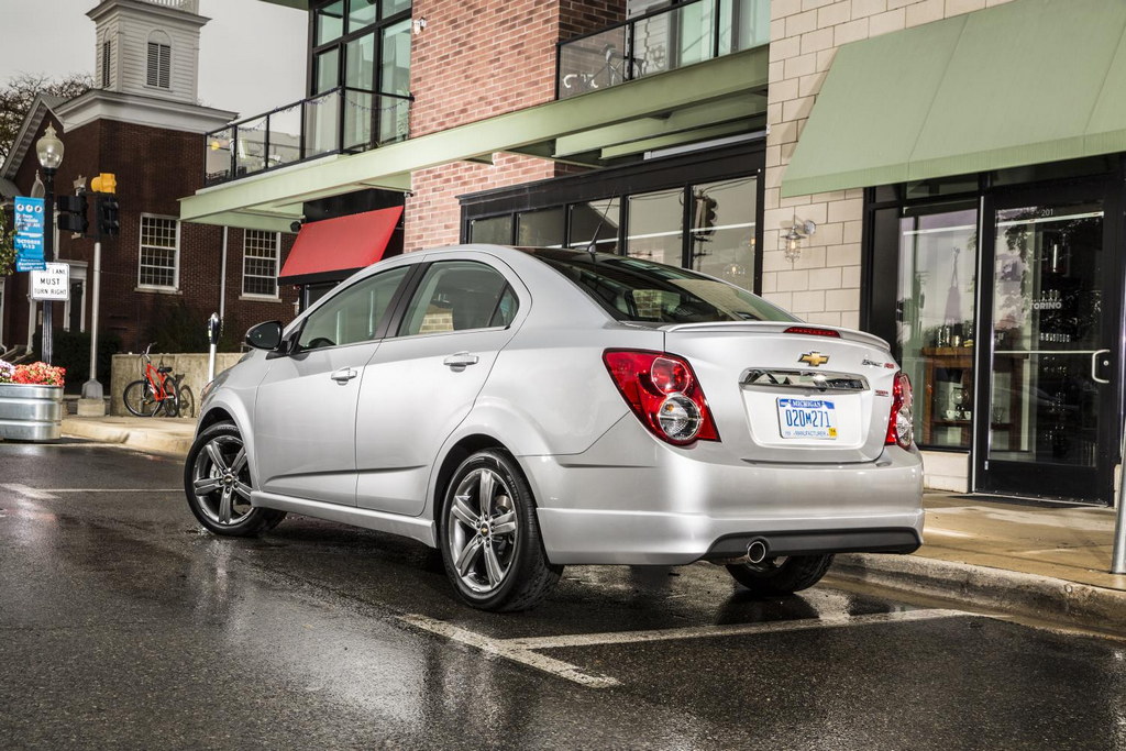 2014 Chevrolet Sonic RS Sedan is powered by an Ecotec 1.4L turbo engine rated at 138 horsepower (103 kW) and 148 lb-ft of torque (200 Nm). What sets it apart from the normal models is a sport-tuned lowered suspension that in combination with unique transmission gearing result in a sporty driving feel.