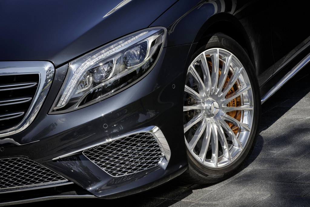 2014 Mercedes S65 AMG gets slightly different bumpers with more chrome work, as well as a set of 20-inch AMG multi-spoke light-alloy wheels, ceramic, high-gloss polished wheels to be distinguished over normal models. If you peek through those wheels you see AMG’s carbon-ceramic brake discs available as optional extra.