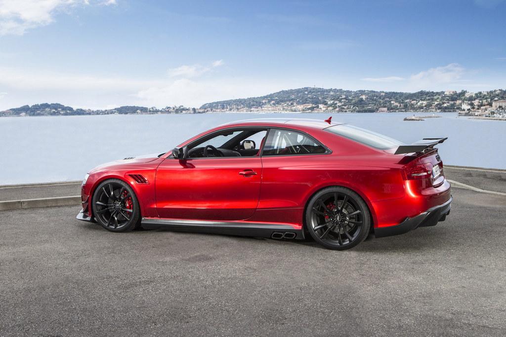 The highlight of ABT Audi RS5-R, however, is its sporty styling kit including revised bumper with large air intakes, and a carbon fiber aero kit consisting of a front splitter, winglets, side skirts, rear wing and diffuser. The front wings are also modified to match the bumper. You can have any wheel design you like, but ABT recommends ER-F 9.5 x 20 inch models with Dunlop SP Sport Maxx GT in 275/30 R20.
